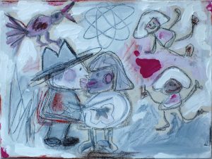 Hug in pastel . Acrylic and graphite on canvas . 35X25 cm. 2013