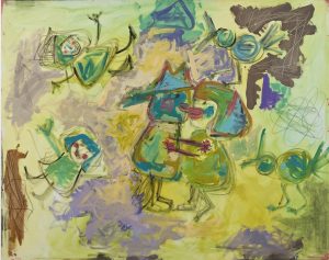 Variation of hug in yellow. Acrylic and graphite on canvas. 120X150 cm. 2008